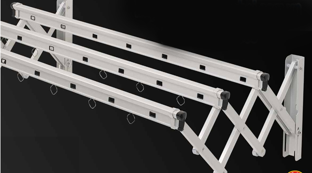Giàn phơi thông minh gắn tường được làm từ inox nhập khẩu 100% hoặc hợp kim nhôm cường lực có khả năng kéo ra xếp lại gọn gang trên tường nhà khi không có nhu cầu sử dụng nữa.